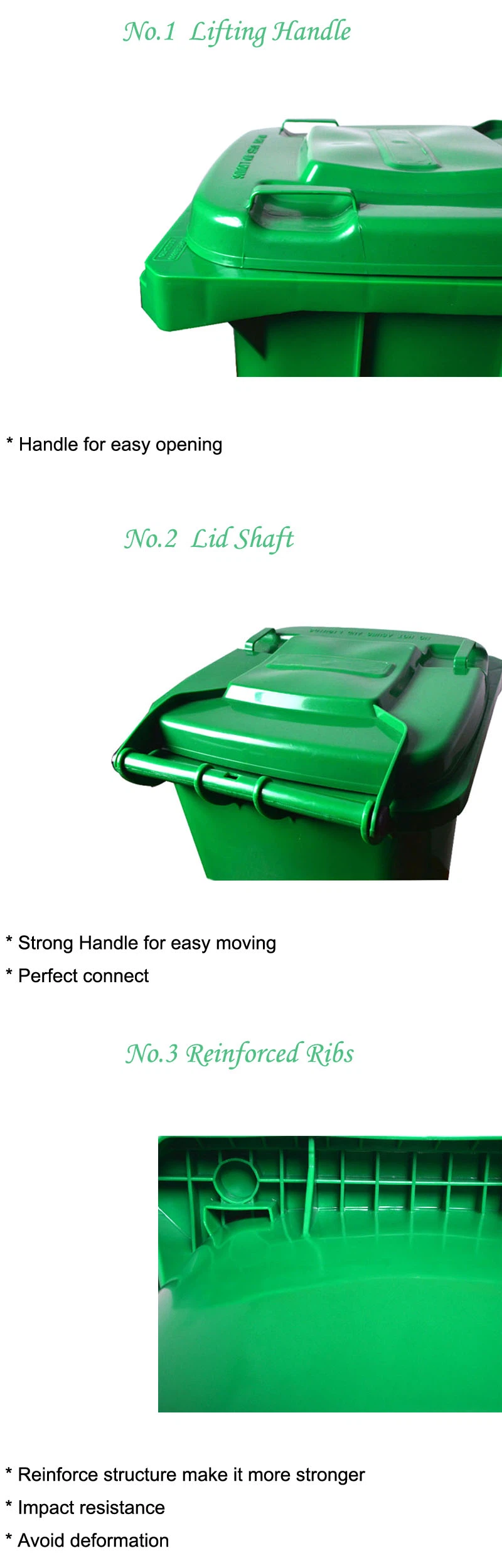 3- سلة المهملات بالكامل (الجسم والغطاء) مصنوعة من HDPE بنسبة 100٪ | |||